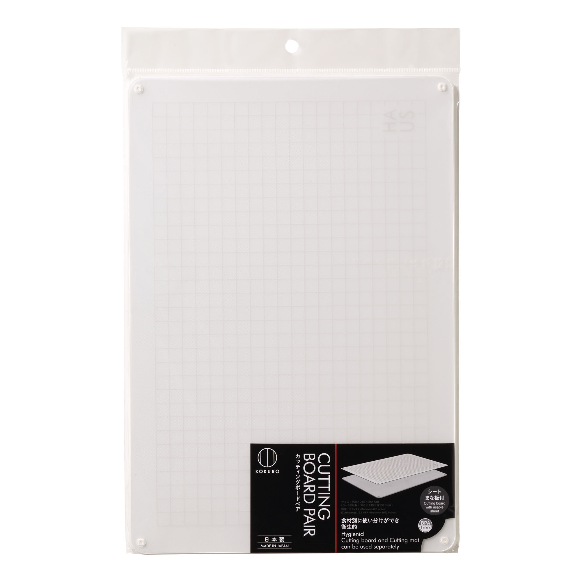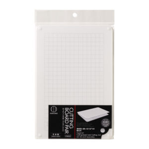 ◎白い本体まな板と半透明のシートまな板がペアで重なった「カッティングボードペア」