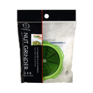 白い本体容器にナッツ類を入れて、緑色のフタをかぶせて、上から押さえながらツイストするように回すだけで細かく砕けます。容器とフタの凹凸の溝がナッツに当たり、細かくなって底の穴からポロポロと落ちる仕組みです。料理の上でクラッシュすればそのままトッピングできるので便利です。サラダ、ピラフ、カレーなどの料理や、ヨーグルト、アイス、パンケーキなどのスイーツ、ドリンクなどにナッツを手軽にプラス。おいしくおしゃれに楽しめます。