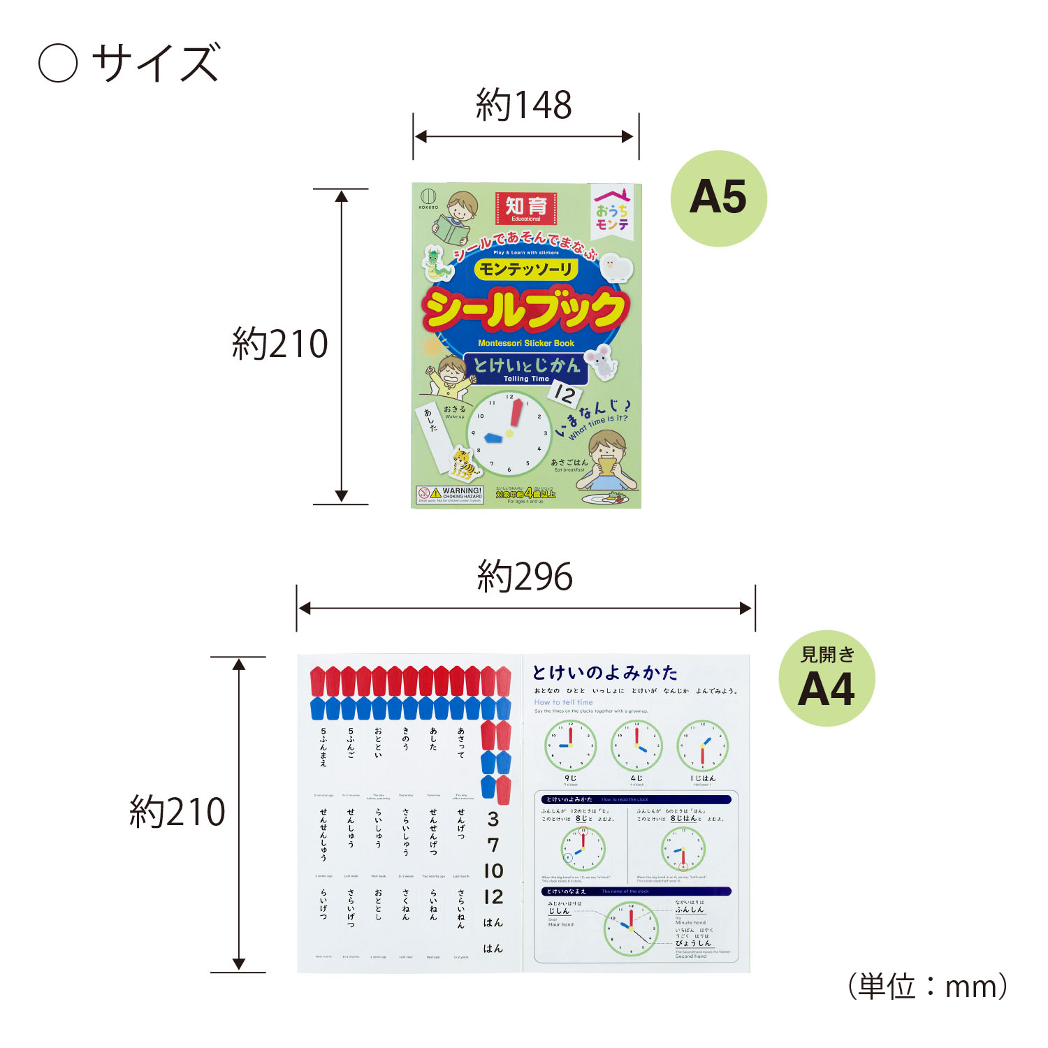 おうちモンテ モンテッソーリ シールブック とけいとじかん 品番:KC-318 JAN:4956810403189